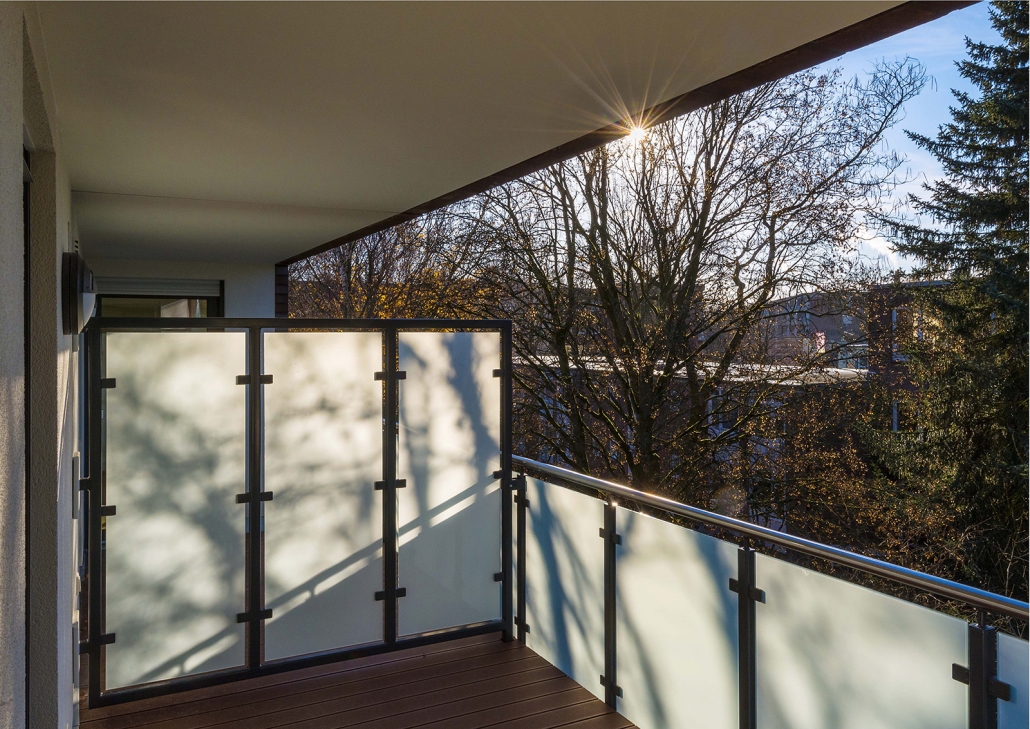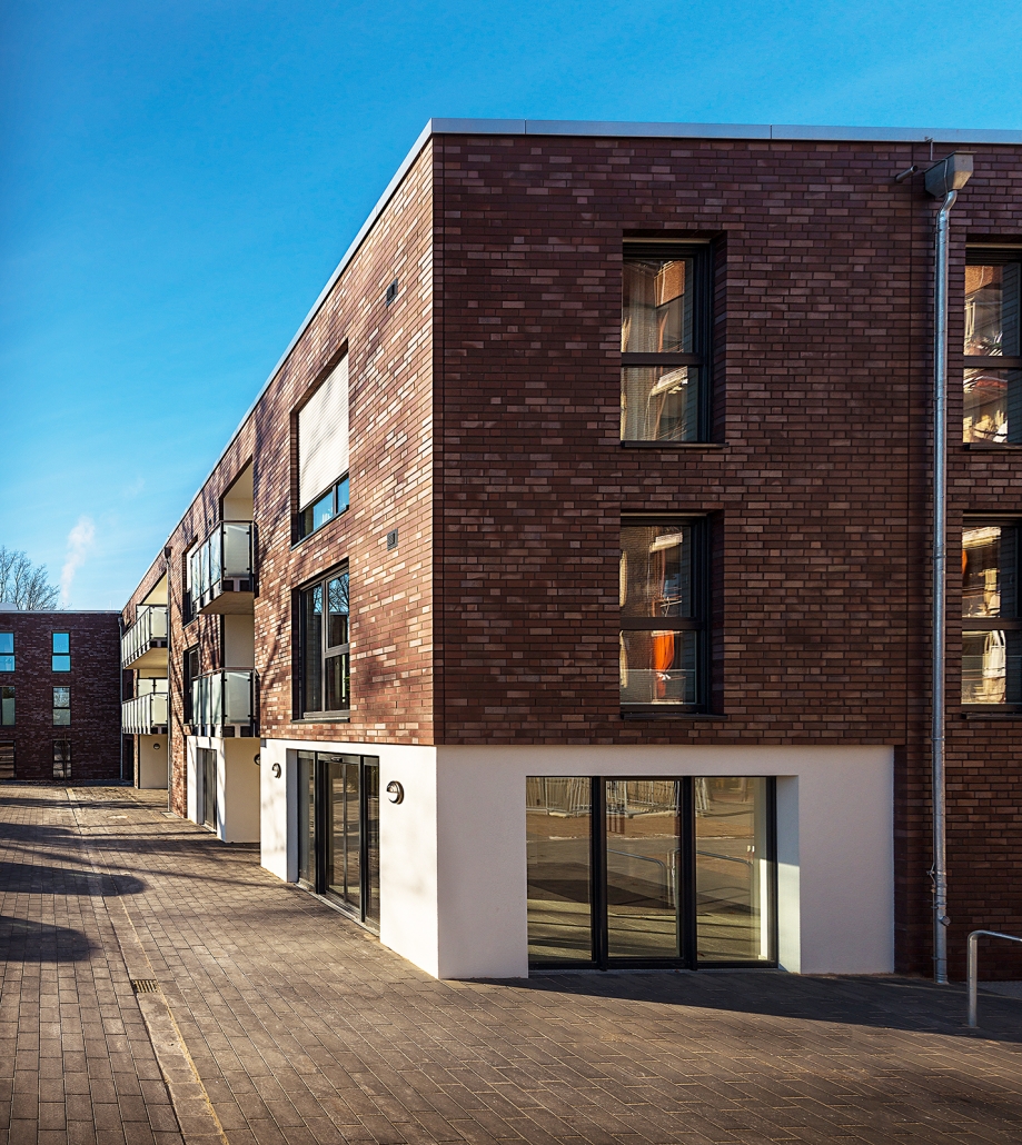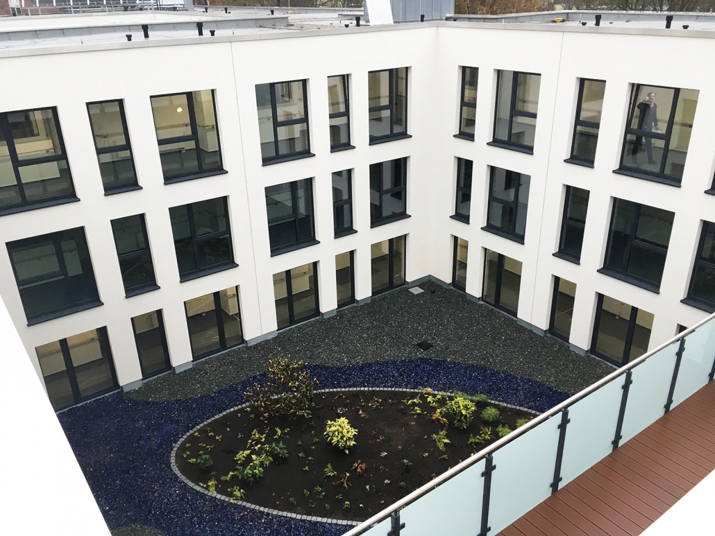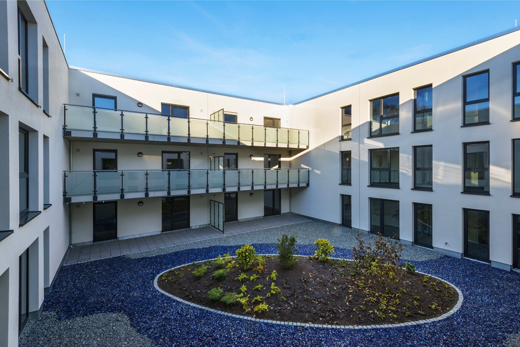 Atriumhaus mit 60 Wohnungen.